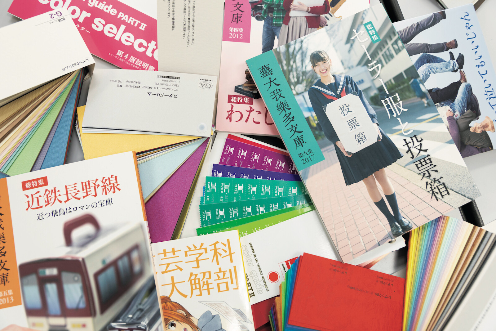 マーケティングから企画立案、構成、編集、印刷システムに至るまで、マスコミ業界の現場で役立つ知識や技術をラインナップし学んでいきます。伝えたいテーマやメッセージを、言葉や、写真・デザインといったビジュアルで広く一般にアピールするためのノウハウを身に付けます。また「ブックデザイン」実習などを通じて、テーマやメッセージを吟味し、言葉や写真を選び、デザインを決めていく行為は、様々なビジネスシーンで応用の効く「編集力」を鍛え、その知識やスキルは、企画や広報の世界でも活かしていけるものです。