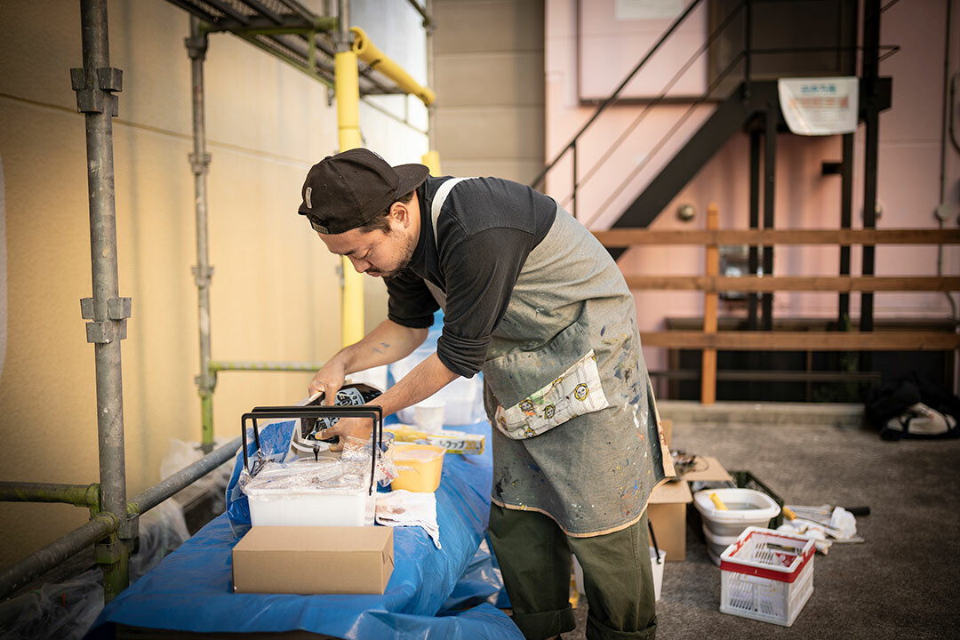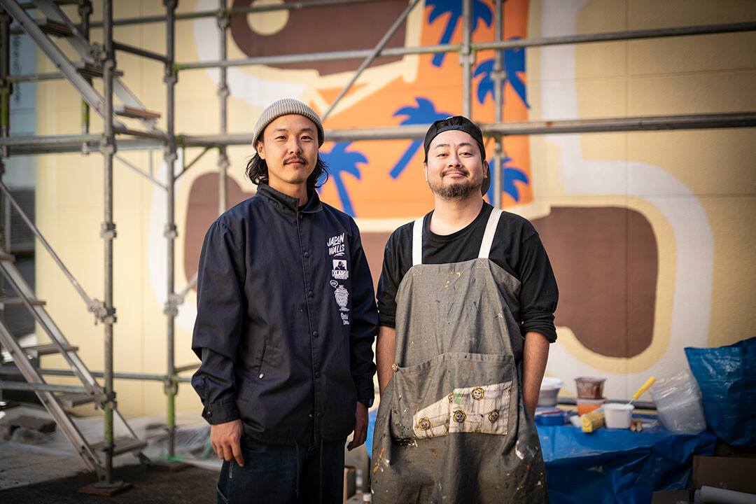 いつもはアトリエにこもって制作をすることが多い2人にとって、JAPAN WALLSのような壁画フェスは特別なひととき。1日の制作が終わったあとのアーティスト同士の交流も普段ない刺激になったそうです。