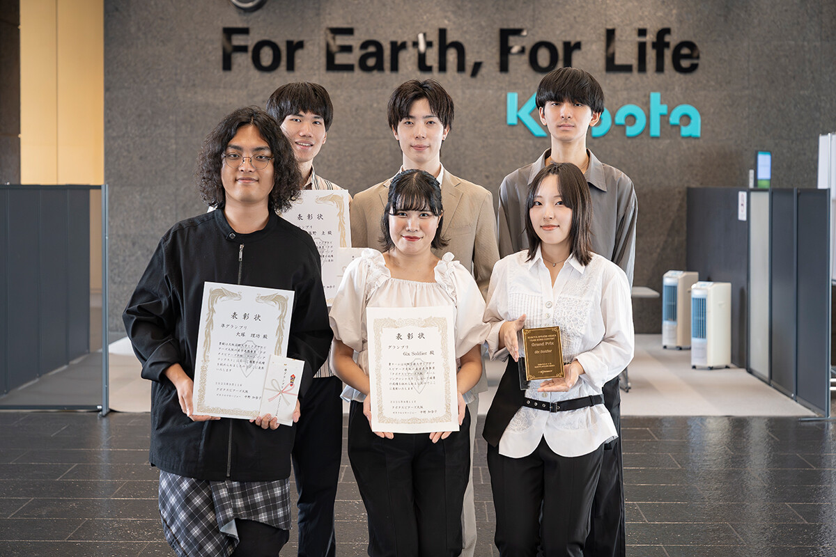 プロバレーボールチーム「クボタスピアーズ大阪」×大阪芸術大学の産学連携プロジェクトとして、公式チームソングコンテストが実施され、演奏学科ポピュラー音楽コースの学生たちが楽曲制作に取り組みました。応募作の中から、学生5人ユニット「6ix Soldier」の作品がグランプリを受賞。2025年9月11日に大阪市浪速区のクボタ本社にて表彰式が行われ、公式チームソング「Color Your Future!~繋がる想い~」が生歌唱で発表されました。また12月7日、Asueアリーナ大阪(大阪市中央体育館)で行われた同チームの公式戦で、ファンに向けて初披露されました。