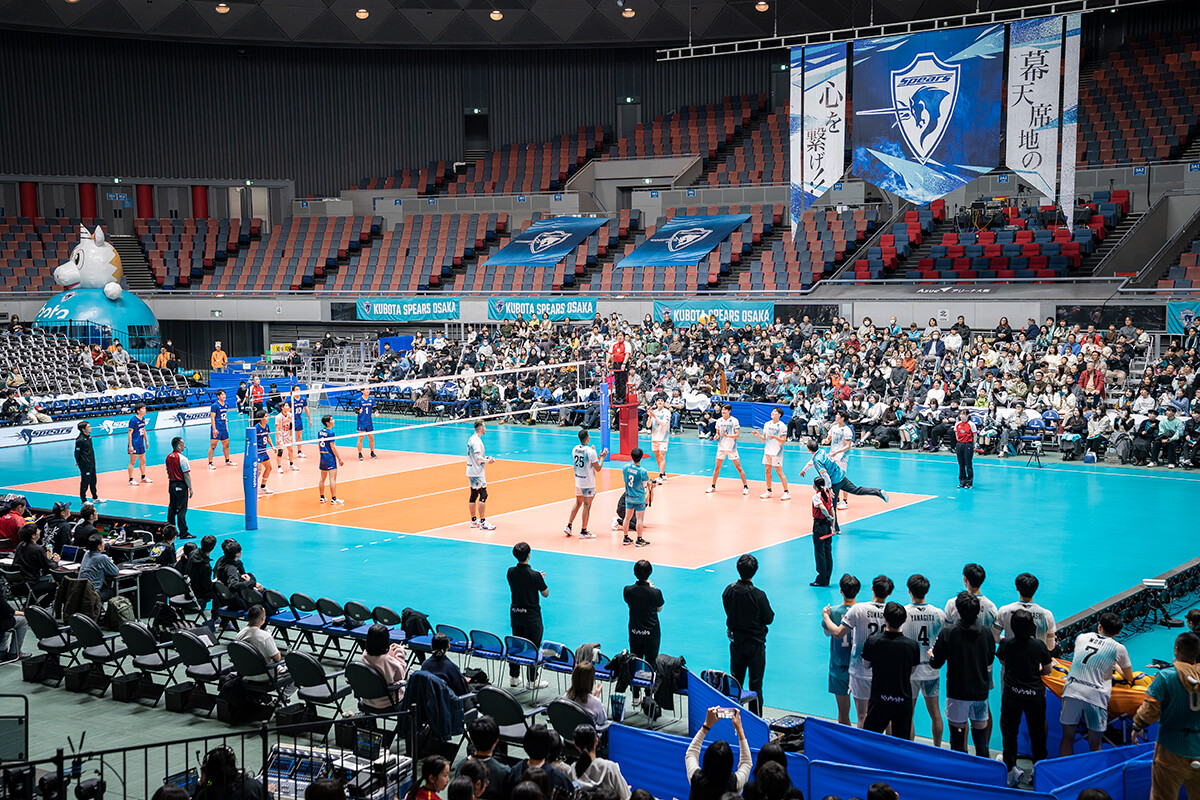 試合はセットカウント1対1で迎えた折り返しから、このパフォーマンスに後押しされるようにスピアーズが勢いを増し、続く2セットを連取。最終的に3対1で勝利を収めました。学生たちの歌声はまさにチームを力づける「勝利の歌」となり、会場は熱気と歓喜にあふれていました。