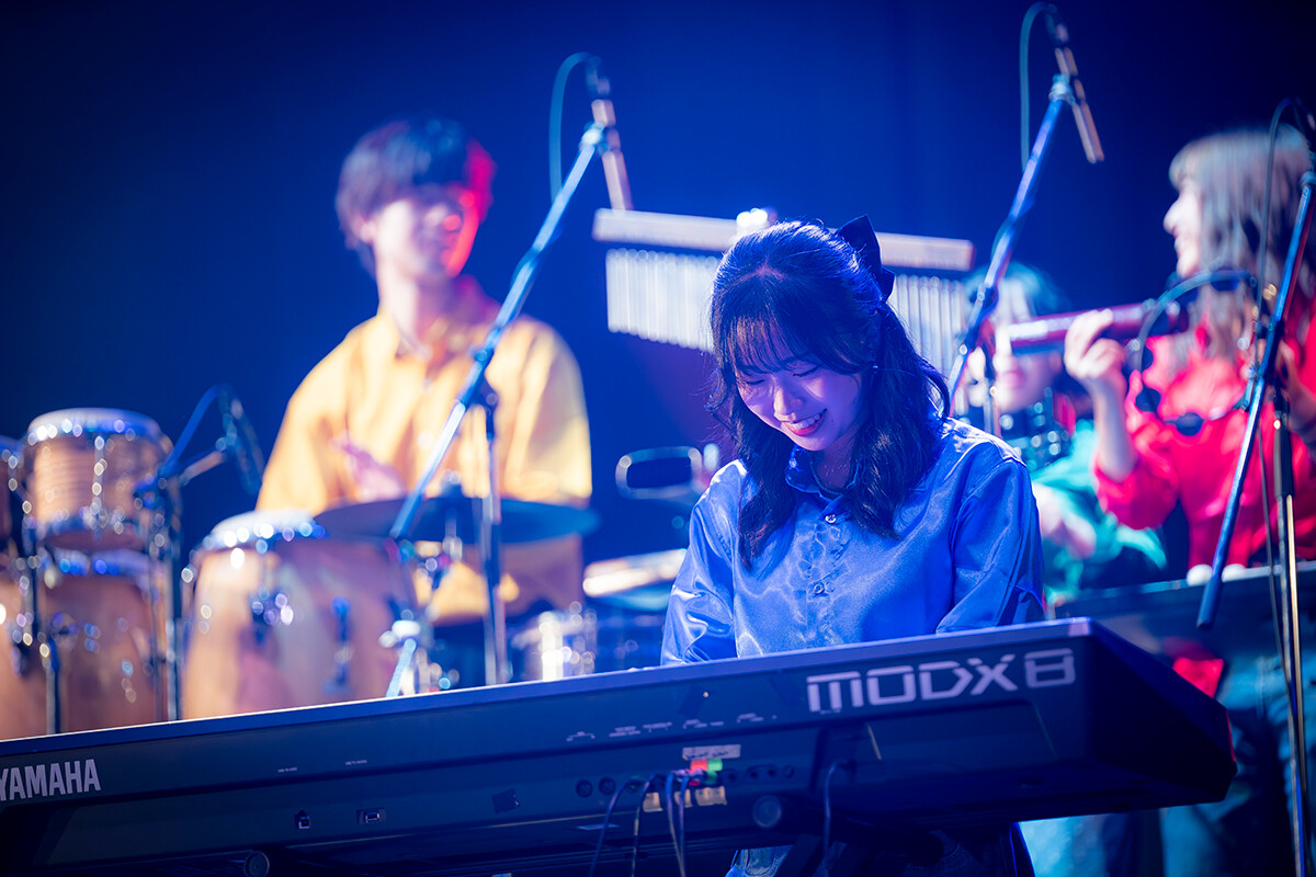 「POP WAVE LIVE 2025」では7組のバンドでキーボードやピアノを担当しました。どのバンドも演奏曲のジャンルがバラバラでしたが、練習時から「明日はこの曲に専念して、次の日はこれ」と自分でスケジュールをしっかり立てて、ひたすら練習しました。その上で本番では「ここで高音域のフレーズを弾いたらもっと格好良くなるかな」とアドリブっぽいことを入れたりもしました。担当した7組のバンドの中でもウィリウォンカ倶楽部では、超絶技巧ピアニストであるミシェル・カミロさんの曲「Tropical jam」のカバーに挑戦しました。タッチが軽いエレクトーンでは高校時代から弾くことができていたのですが、生ピアノとなるとすごく難しくて。ただ、あえてテンポをちょっとずらしてグルーブ感を作るなど、練習を重ねる中で自分なりの表現を見つけていきました。そんな私が影響を受けた奏者が、T-SQUAREの元キーボーディスト・和泉宏隆さん。和泉さんの、自分の感情を聞いている人にしっかり伝えるような演奏をリスペクトしています。私は音楽の楽しさを熱く語れる自信があるので、子どもから大人の方まで「音楽ってこんなにおもしろいものなんだ」と教えられるような道をめざしたいです。