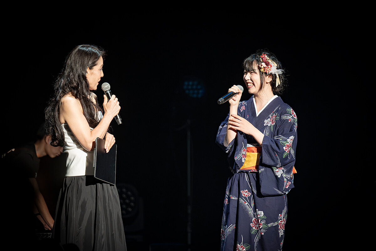 そんな各組のパフォーマンスの前後には、司会を担当する演奏学科ポピュラー音楽コースの森川美穂先生と学生たちによるミニトークも実施。芸短帝国のボーカル・北井志保さん(メディア・芸術学科2年生)は「このバンドで初めて音を合わせたときはボロボロの状態でしたが、こんなに成長できたんだなって」と自分たちのパフォーマンスを振り返り、満月band setの山本満月さんは「心がときめくことに挑戦して、新たな自分になって、いろんな方に音楽を届けたいです」と今後のアーティスト活動の展望を語りました。