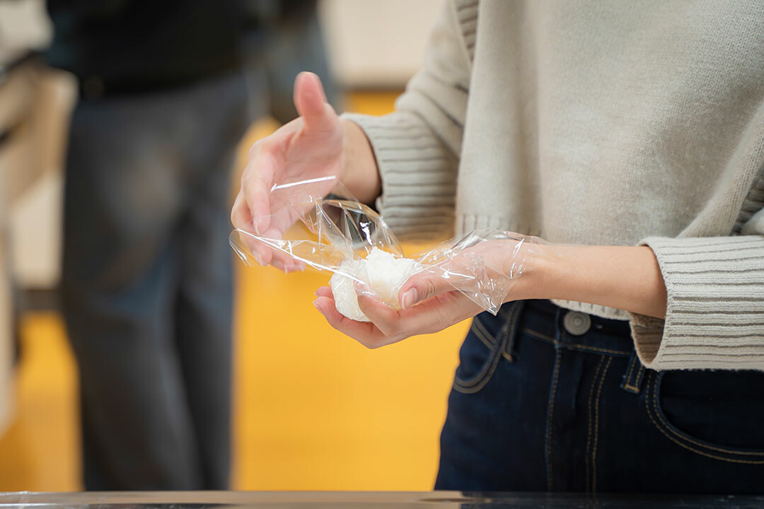 販売する商品よりも少し小さめににぎり、ご飯と具材のバランスに配慮しながら、たくさんのアイデアを試していきます