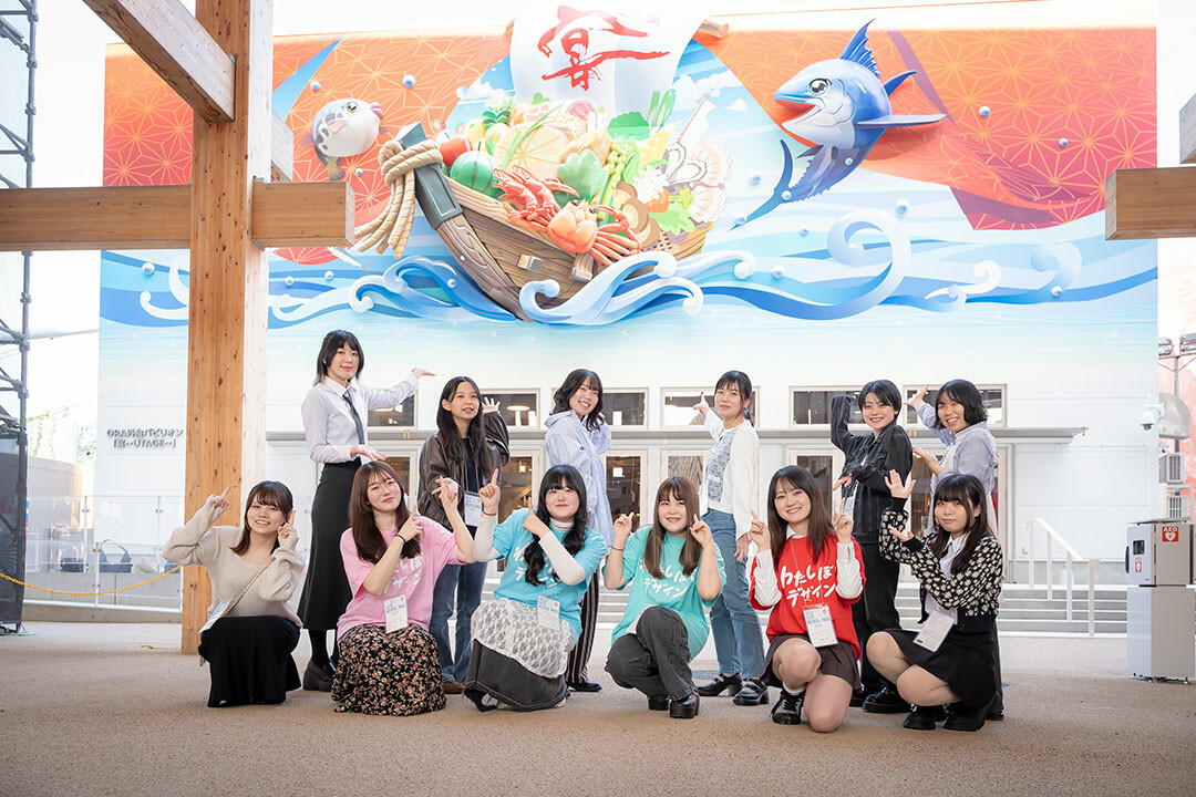 デザイン学科には各コースと学年を横断する授業ハイパープロジェクトがあります。そのうちのひとつ「わたしぼくデザイン」では数年をかけて、あるテーマに取り組んできました。それが日本のソウルフードであるおにぎりと世界各国の料理をコラボレーションした新しいおにぎりを大阪・関西万博に来場する人々におにぎりを通して世界の国や食文化を知ってもらおうという「世界のおにぎり」プロジェクト。学生たちが自らアプローチしたニコニコのり株式会社の協力を得て関西各地でのキッチンカーやポップアップストアでの販売へ。さらに炊飯器メーカーの象印マホービン株式会社との共創により、大阪・関西万博のORA外食パビリオン 宴「ONIGIRI WOW !」での世界のおにぎり販売へと結びついていきました。