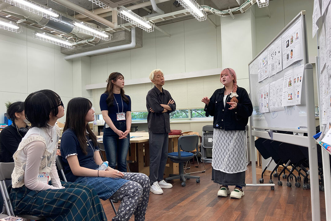 清水先生の左隣が島本若葉さん、右隣が辻下綾乃さん。今では「わたしぼくデザイン」を引っ張っていくリーダー的存在です