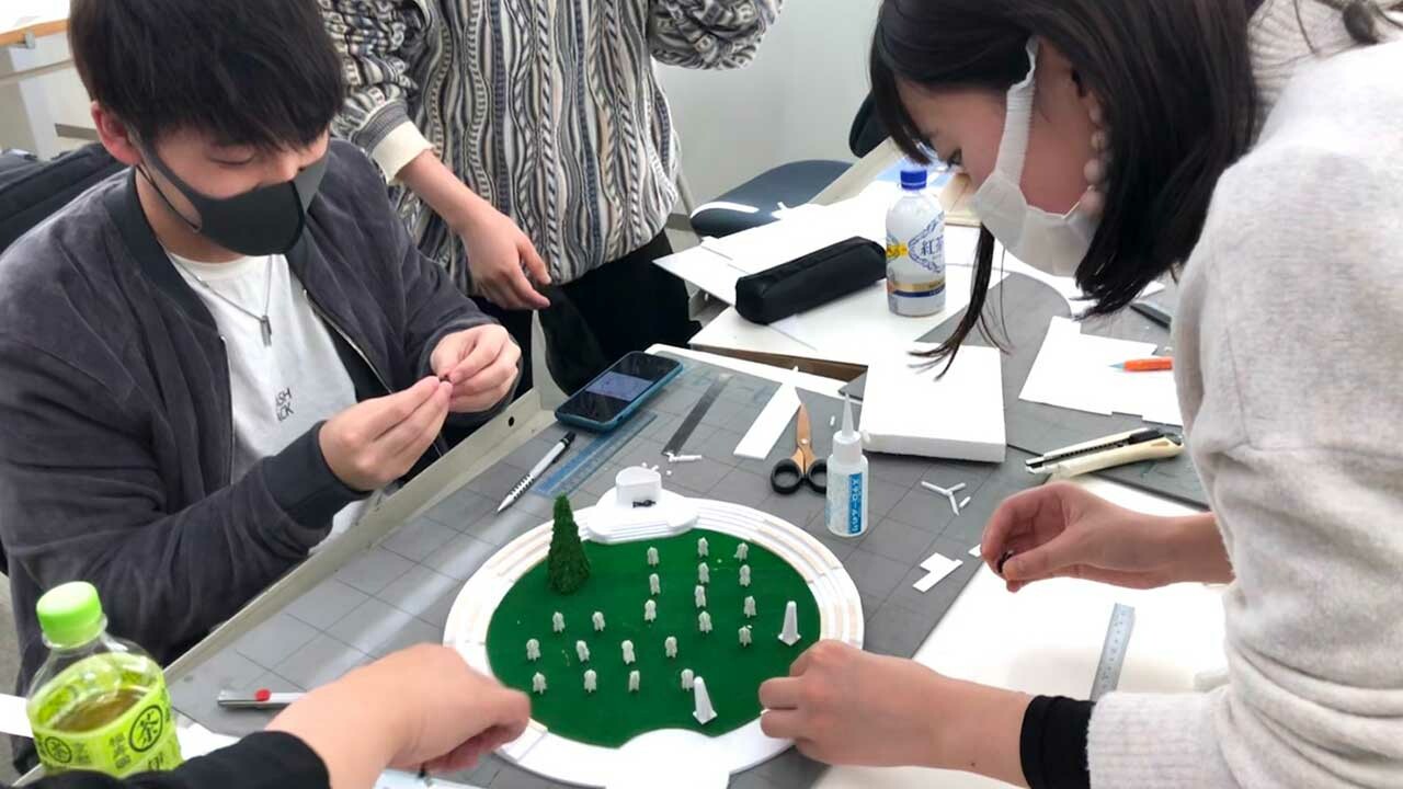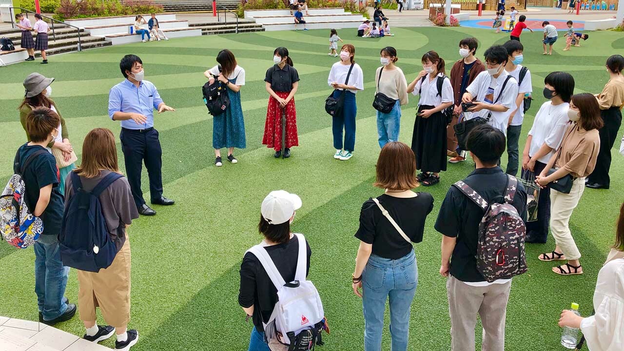 授業が始まったのは、新型コロナウイルス感染症による出校自粛期間中。現地下見が実現したのは、すでに関西が梅雨入りした時期でした。対面での話し合いがなかなか出来ない状況でしたが、グループに分かれてオンラインでの打ち合わせを進めながら重ね、新たな生活様式にも対応できるプランを練っていきました。