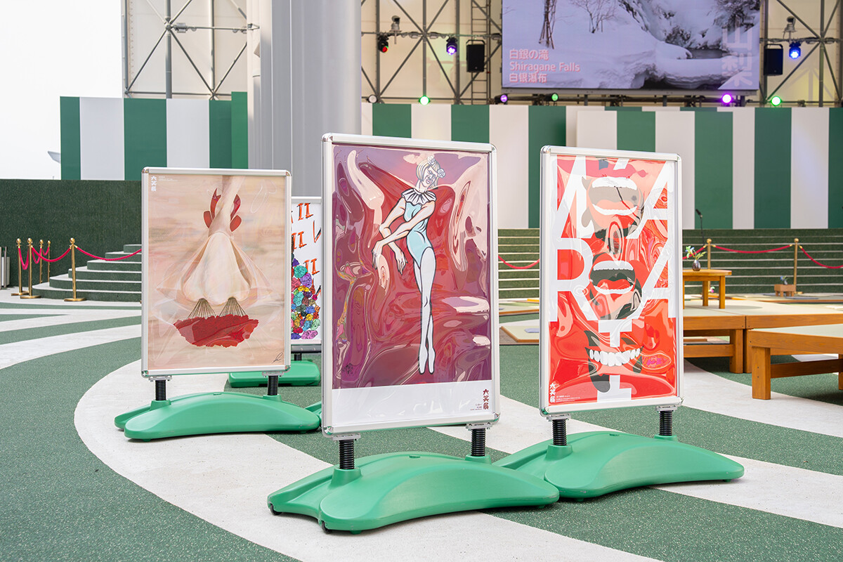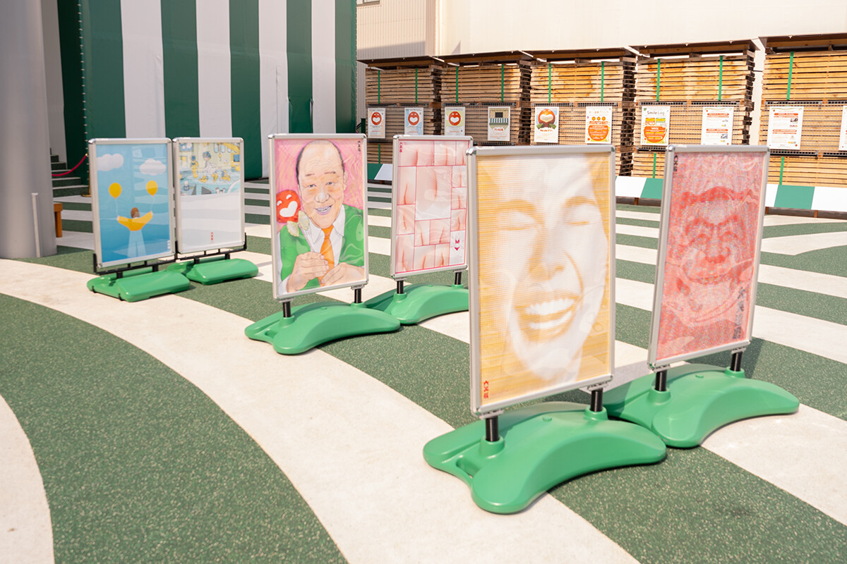 waraii myraiiプロジェクトは、過去4年、大阪・関西万博での実現をめざして取り組まれてきました。数々のアイデアの中から、2022年度の学生がネーミングを提案した「大笑展(だいしょうてん)」が採用され、2025年度の学生を中心に実現化。大阪・関西万博 よしもと waraii myraii館にて、大阪芸術大学の学生と卒業生、吉本芸人による「笑い」をテーマにしたポスター40点が展示されました。