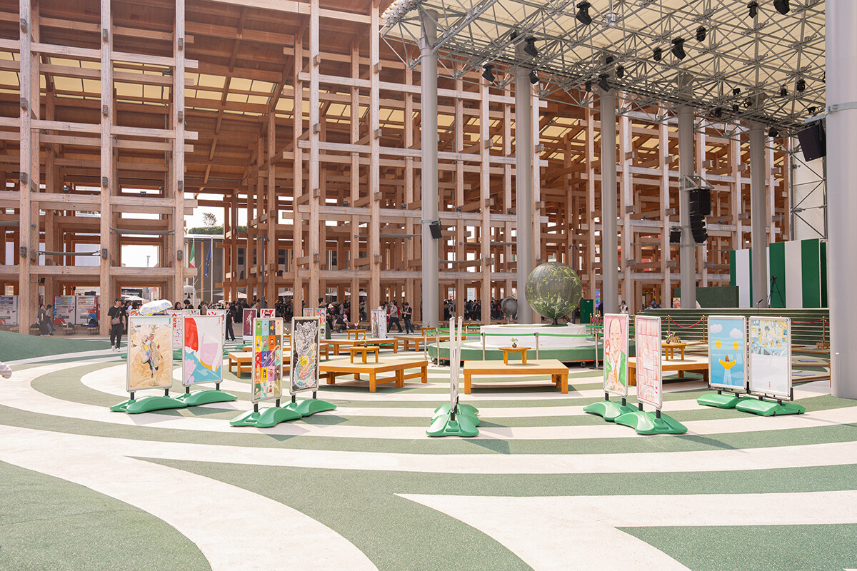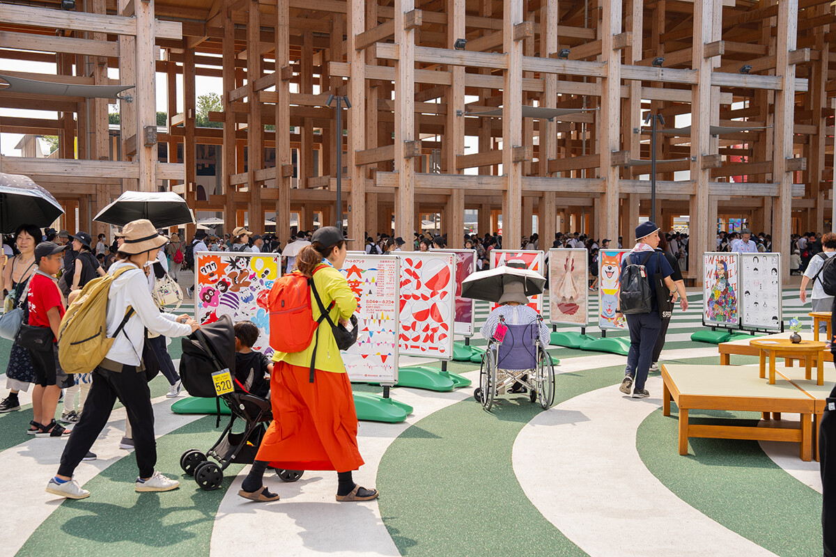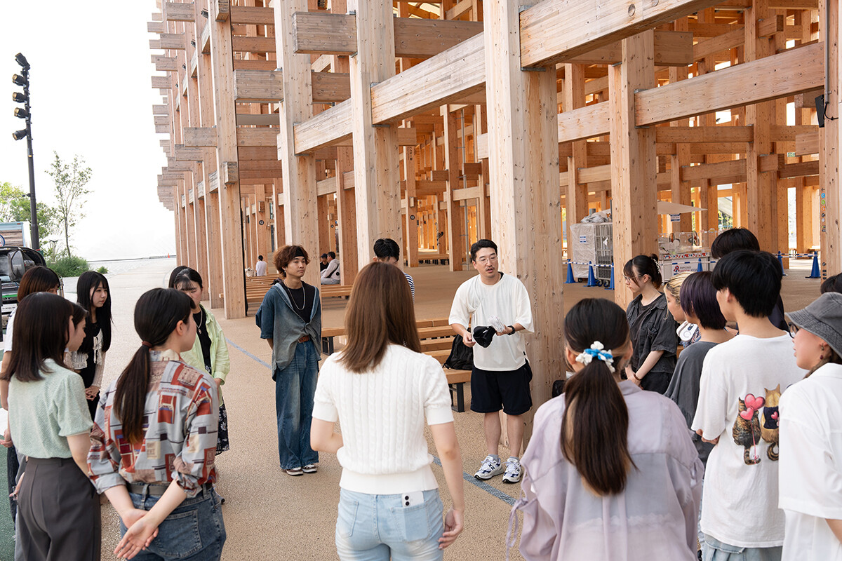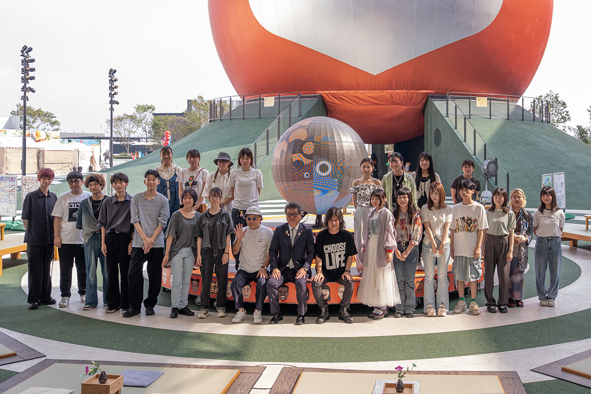 2025年8月4日〜23日、大阪・関西万博のよしもと waraii myraii館・アシタ広場で「アートのアシタ 大笑展」が開催されました。これは、デザイン学科の3年生対象のデザインプロジェクトで、デザイン学科客員教授の杉山恒太郎先生のもと、2022年より実施されてきた吉本興業との「waraii myraiiプロジェクト」の1つです。万博会場では、2024年度の学生のアイデアが形になった盆踊りステージも、「盆踊りのアシタ」で使用されました。