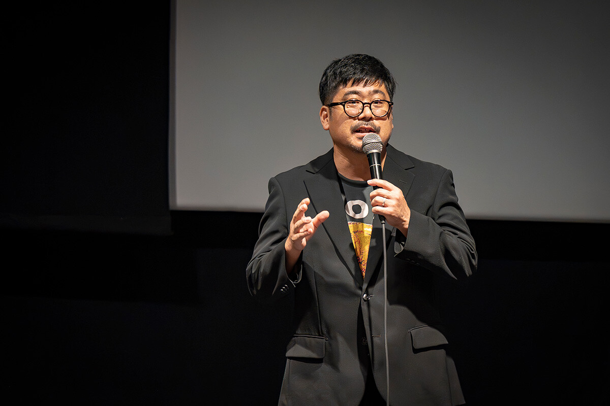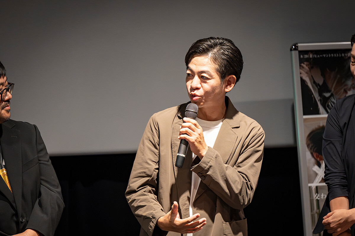 大阪芸大の「産学協同プロジェクト」で完成した映画が全国公開されるのは、これが初めてのこと。秋庭さんは「天にも昇る気持ちです。自分の名前が残るように4年間を過ごそうと思っていたので、それが実現できてすごく幸せです」と喜びを爆発させます。そして舞台挨拶の最後に熊切監督が「純粋な気持ちで映画を撮ることができました。どうぞ楽しんでください」と呼びかけると、金田先生は「大阪芸術大学の舞台芸術学科には『おっ』と思う学生がいっぱいいます。もっと外に向けて発信したらいいのに、という学生もたくさんいます。今回は秋庭くんをキャスティングしましたが、これが一つのきっかけになってほしいです」と学生たちの今後のがんばりに期待を寄せました。