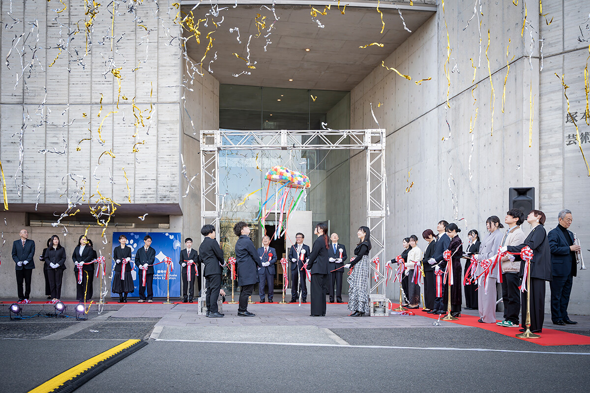 続くオープニングセレモニーは、演奏学科によるデュカス作曲のラ・ペリの「ファンファーレ」の演奏で幕開け。学長賞や学科賞を受賞した卒業生たちによるくす玉開きとテープカット、そしてエドガー作曲の「威風堂々」の演奏が響き渡り、多くの来場者の拍手とともに2025年の卒業制作展が始まりました。