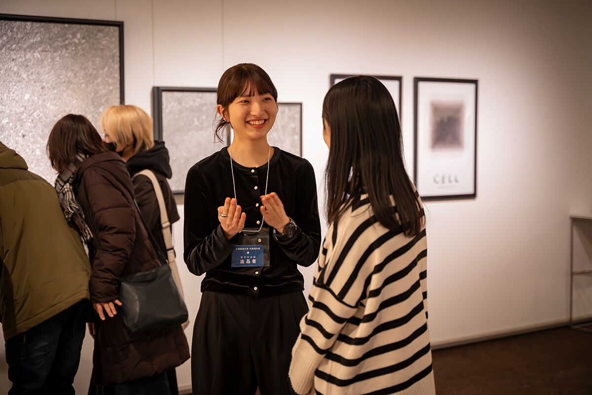 約10万坪と広大なキャンパスが卒業制作展の会場となりました。芸術情報センターの展示ホールとアートホールでは、学長賞や学科賞を受賞した優秀作品が展示されました。多くの来場者が訪れ、在廊中の学生たちと作品について対話している様子も見られました。