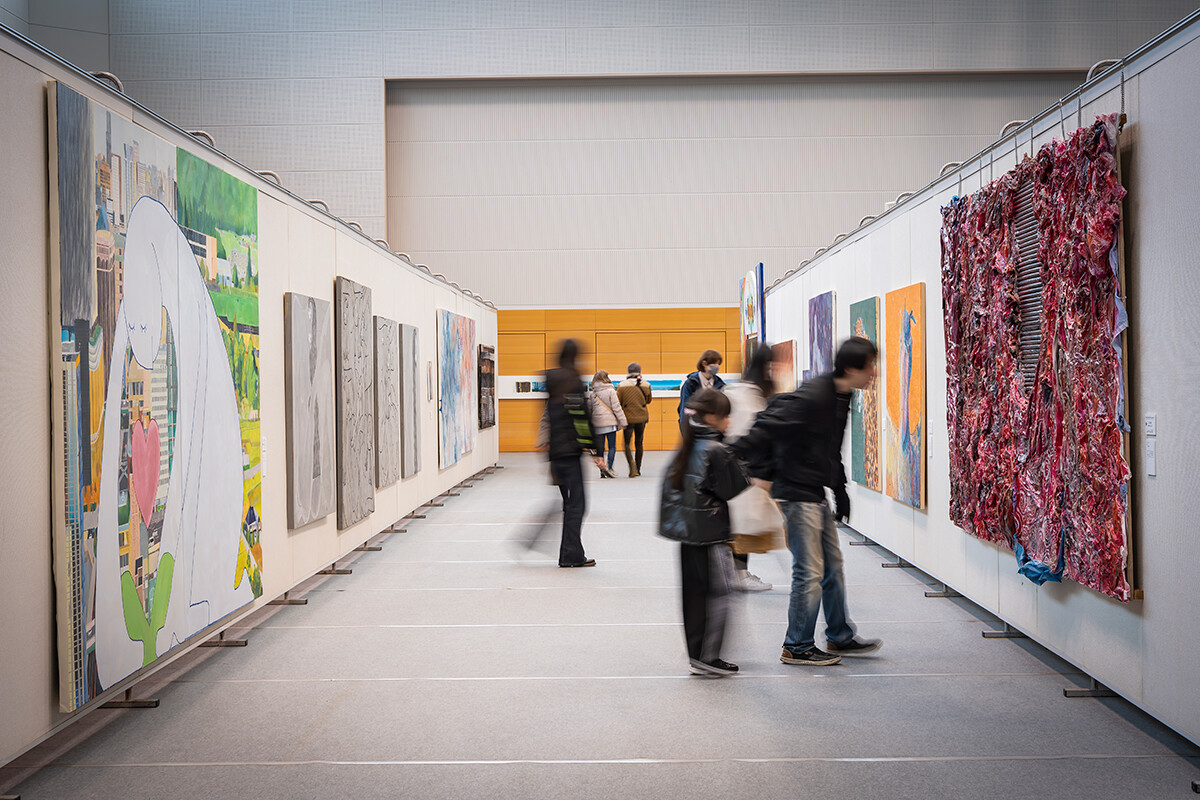 総合体育館にて美術学科、工芸学科の作品展示の様子