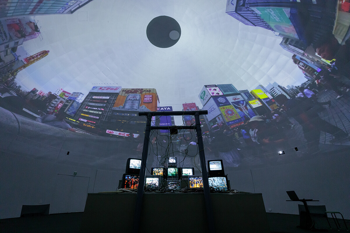 写真学科は実験ドームの設備を活用し、360度天井全体に作品を投影しました。