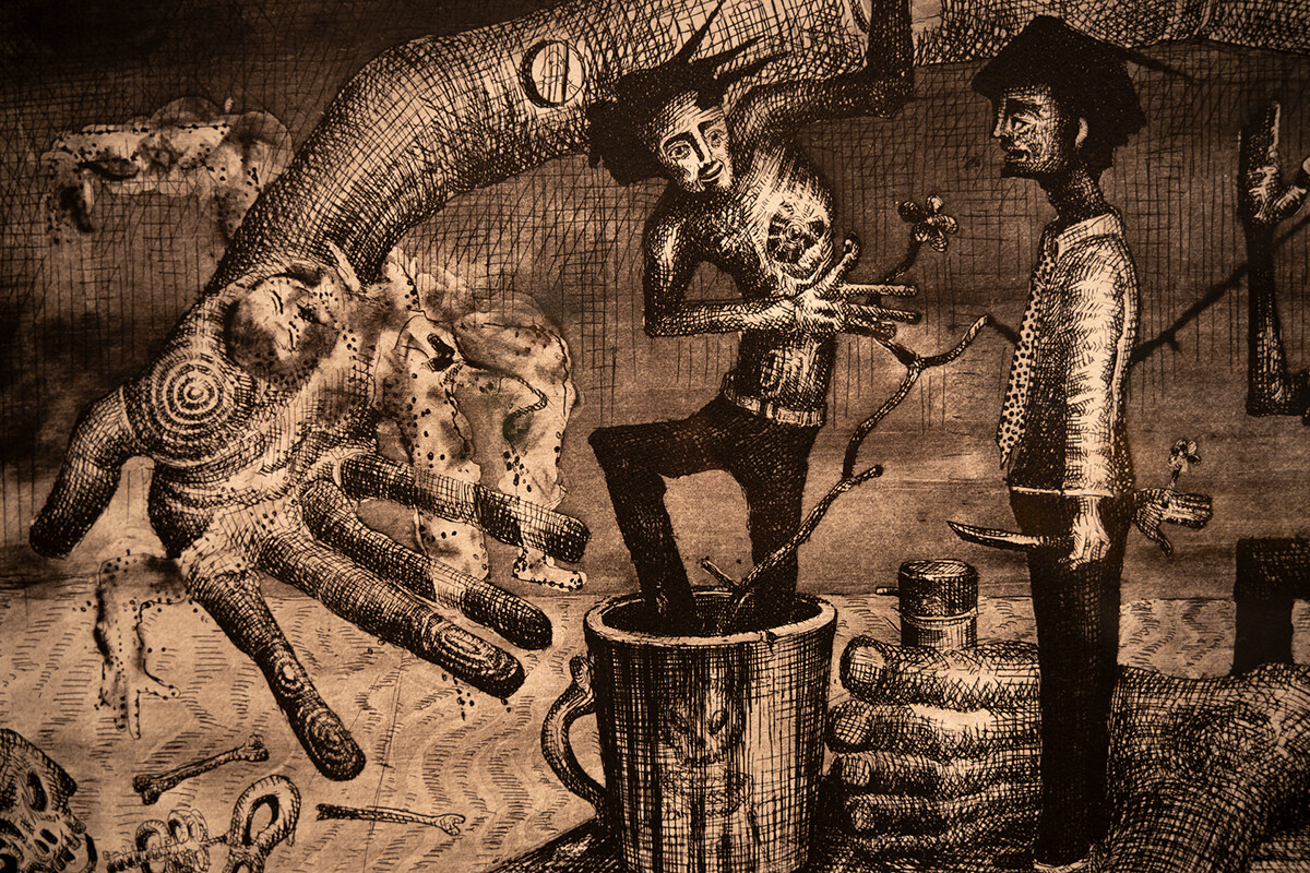 エッチングは不思議な制作プロセスを辿って生み出されるアート。脳内に白黒が反転したイメージを描きながらニードルで銅板を削り、線の表現は腐食の時間によって微妙に変化していきます。試し刷りをすると、どうしても迷ってしまうので、私はいつも一発勝負で刷っています。言わば、どんな作品が生み出されるのかを知らずして作品を創っているんです。重いローラーを回して紙に刷るときは緊張感と期待感に満たされています。この瞬間を味わうために、版画をやっているのかもしれません。