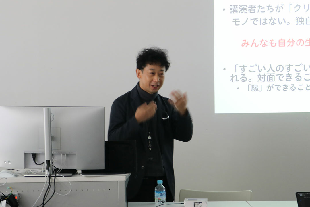 「暫定の制約」についての解説では「日常の違和感や気づきを大事にしながら、『制約』を超えていく」という点が強調され、研究や制作活動を目指している本学の学生にとって、非常に重要な内容を伝えていただきました。