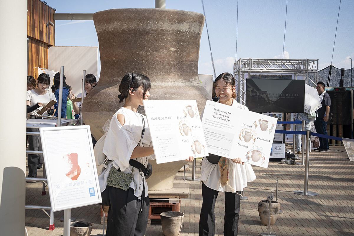 大阪芸術大学芸術計画学科の谷悟先生、山村幸則先生のゼミを受講する3年生たちが参加した2つのプロジェクトが9月16日、23日に2025年日本国際博覧会(大阪・関西万博)内で開催。学生たちと両先生や各関係者が練り上げた企画・作品が、16日『南河内 LIVE ART EXPO大阪芸術大学×河南町 ワークショップ「囁く壺 叫ぶ壺 時ノ壺」』、23日『国際連合工業開発機関(以下、UNIDO)×大阪芸術大学×株式会社SPEC フューチャーライフエクスペリエンス』で披露されました。