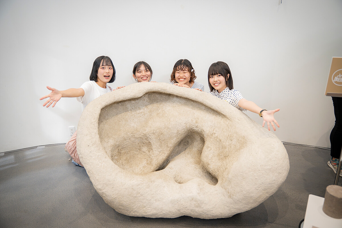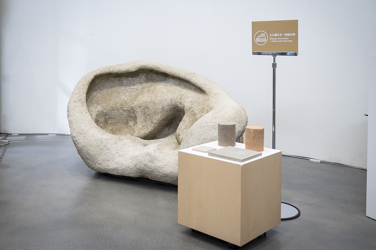 会場では、山村先生を中心に制作された作品「地球の耳」を展示。同作品は、地球上に生きるすべての人々、さらに地球自体に対して「耳を傾けること」をテーマにしています。そして実際、作品に耳を傾けると、世界のさまざまな場所から集められた音が聞こえてくる仕組みになっています。それらの音に耳を傾けることで、遠く離れた国や地域、そして出会ったことのない人たちに対していろいろ想いがふくらんでいきます。