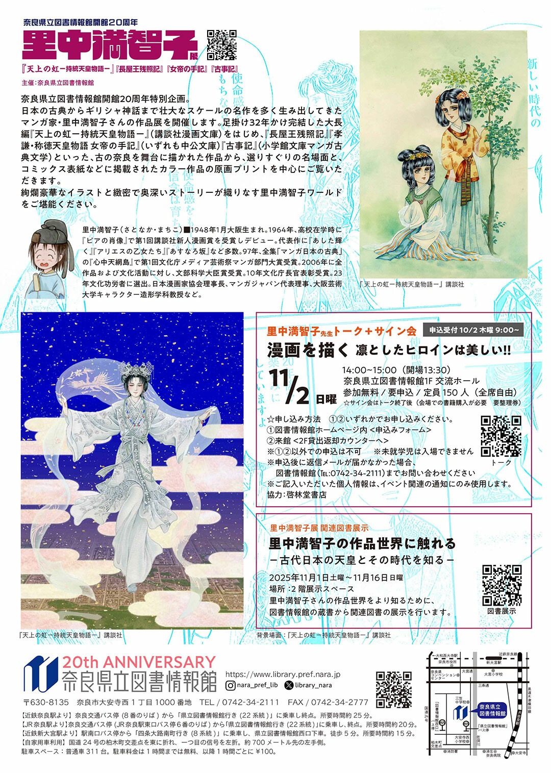 奈良県立図書情報館開館20周年「里中満智子展」を開催します。